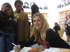 Links: Großer Andrang bei Biankas Signierstunde mit Thomas Fuchs am Thienemannstand auf der Frankfurter Buchmesse